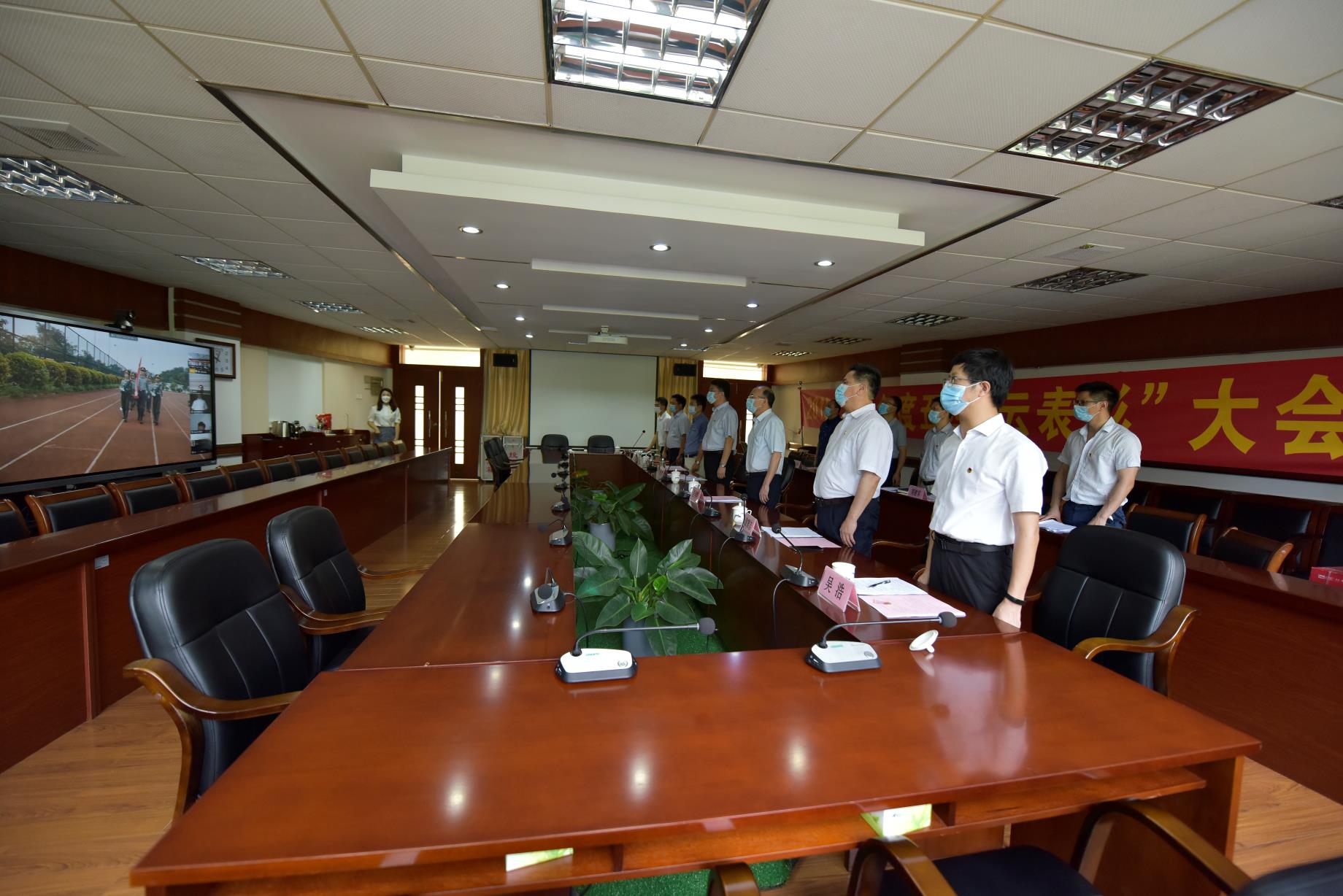 学校领导在主会场参加“云升旗”仪式