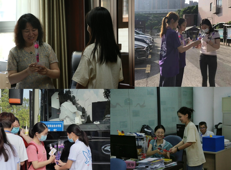 清晨,天河、白云、荔湾三个校区的同学们在各个办公楼、教学楼前等待就位,准备向各位老师送出教师节的第一份祝福。一枝枝鲜艳欲滴的康乃馨,象征着老师们春风化雨,对学生的无私奉献之情;一张张充满感激之情的卡片,饱含了工贸学子对辛勤付出的老师们的无限感恩之情;一声声“老师,祝您节日快乐!” “老师,您辛苦了!”承载了365官网学子对老师们的感激和祝福。