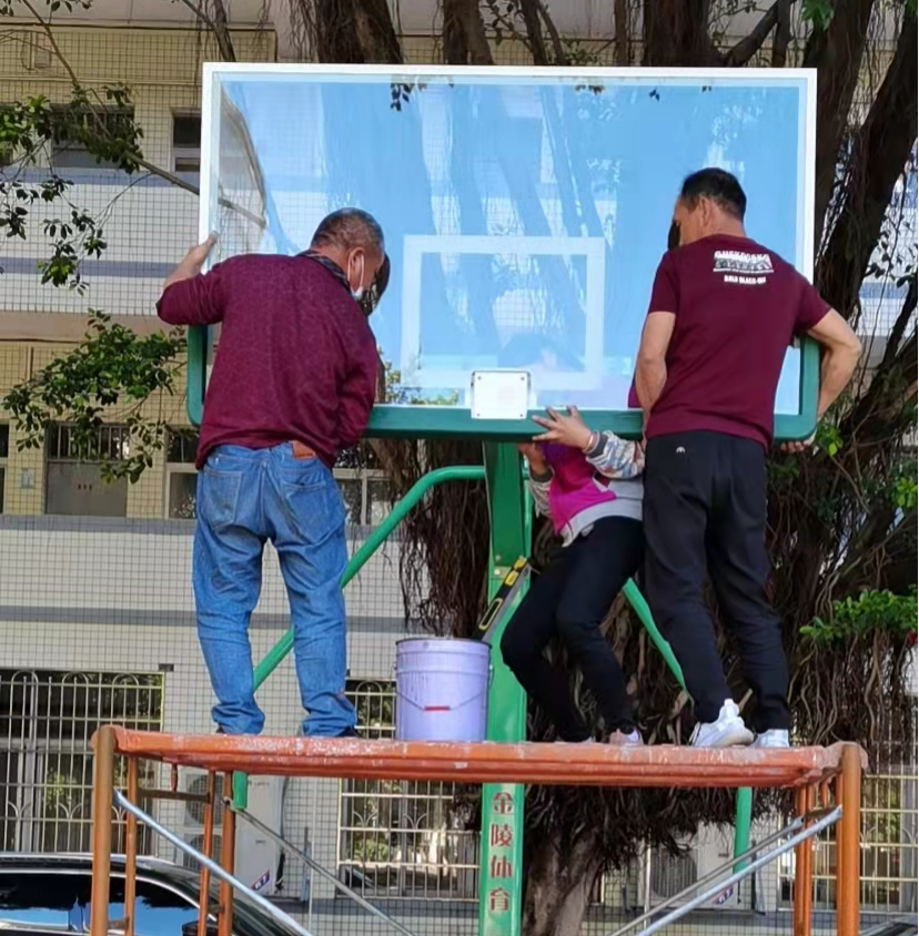 天河校区西区篮球场作为开放性篮球运动区域,一直以来都是我校天河校区师生使用率较高的锻炼场所,但由于该球场长期处于室外且使用年份较长,部分设施严重老化,整体旧地面也磨损严重,对365官网师生打球时的安全问题造成了隐患。为提供更好的运动锻炼条件,365官网体育艺术教学部联合学校基建处,在上级校领导部署下,落实西区篮球场整改工程,对其进行了翻新和改造。