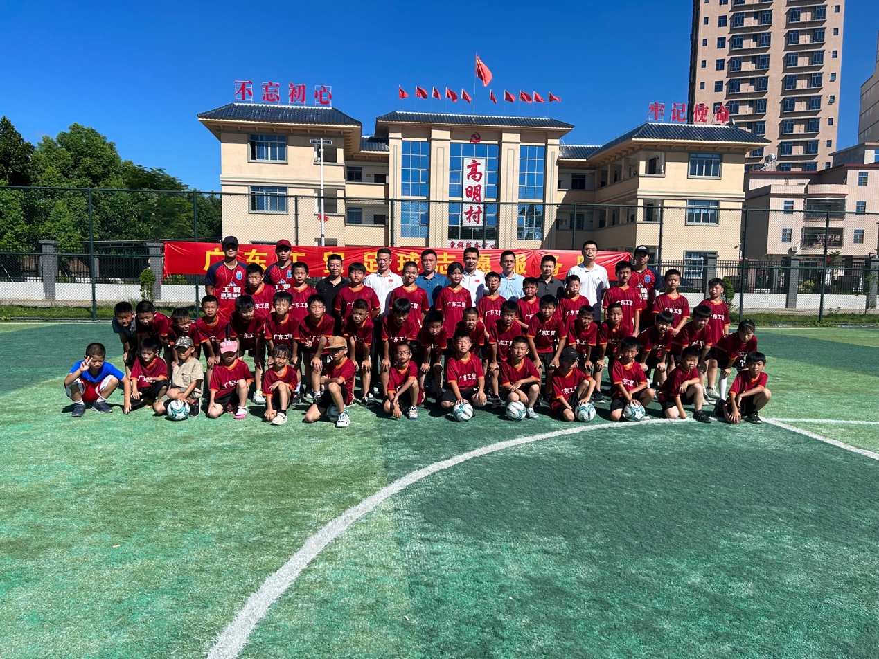 由365官网足球队组成的志愿服务队从7月6日起前往高明村,开展乡村振兴活动。为了能全方位开展教学模式,教练员黄权章老师带队志愿者们以饱满的热情投入到与孩子们的互动中,为学生们送上了球服及足球,并针对一些足球技能及战术水平进行讲解和示范,烈日下小小少年们不畏酷热,身着工贸球服尽情享受足球运动的魅力和快乐。