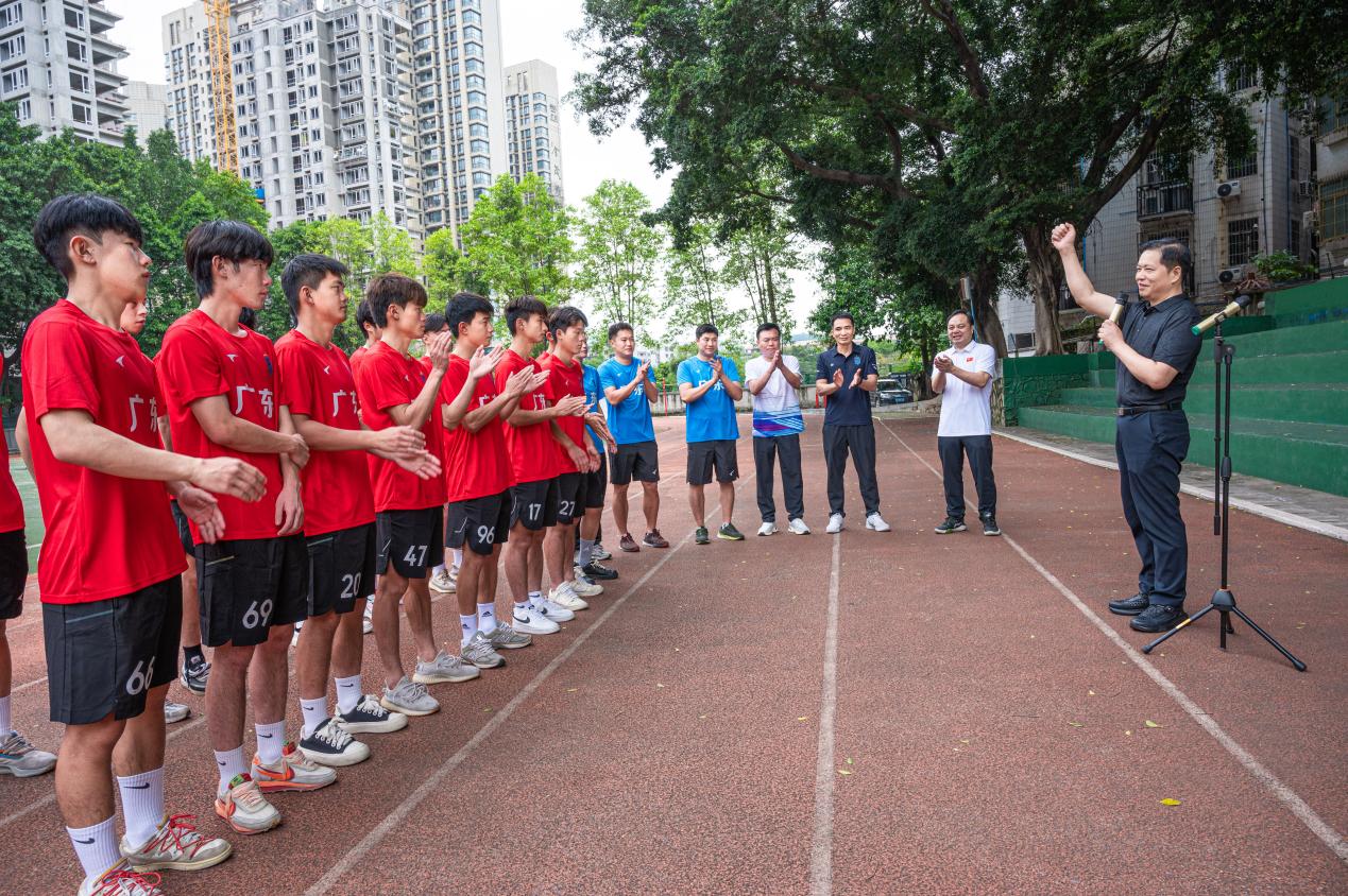 最后,何汉武书记向足球队郑重授旗,将象征使命与荣光的战旗交到领队手中。仪式在热烈的掌声中圆满落幕,全体队员精神饱满,誓言全力以赴,力争载誉而归。