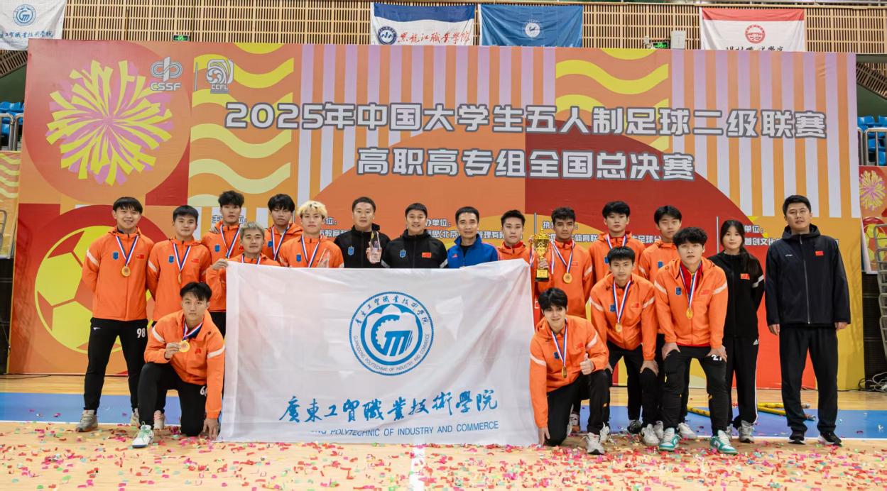 近日,2025年中国大学生五人制足球联赛二级联赛全国总决赛在四川宜宾落下帷幕。本次赛事由中国学生体育联合会主办,共汇聚32支参赛队伍、450名参赛选手,高手云集、竞争激烈。bat365在线平台官网足球队代表广东省出征,历经循环赛的激烈角逐与淘汰赛的严峻考验,在决赛中以11:1的优异成绩完胜黑龙江职业技术学院代表队,成功登顶全国总冠军,不仅刷新广东省高职院校在该项目上的历史最佳纪录,更以精彩表现诠释了五人制足球这一校园适配型运动的独特魅力。