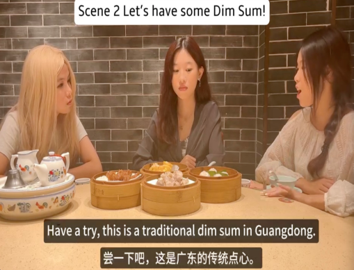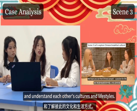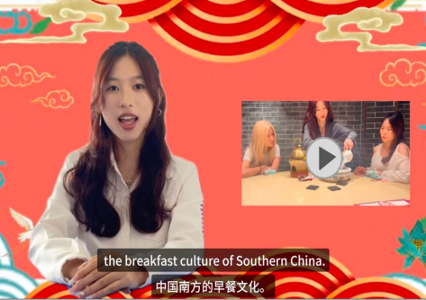 此次比赛要求选手结合自己对跨文化的认识和自身跨文化交际体验,将原创的跨文化案例以视频形式进行全英文表演展示。比赛前,指导教师与三位同学在多次讨论后,确定以中国早茶文化为切入点,以“Insight into Chinese Breakfast Culture: British Students’ Unique Experience”为题目,围绕中英两国的早餐跨文化冲突开展了情景剧表演。详见以下视频截图。