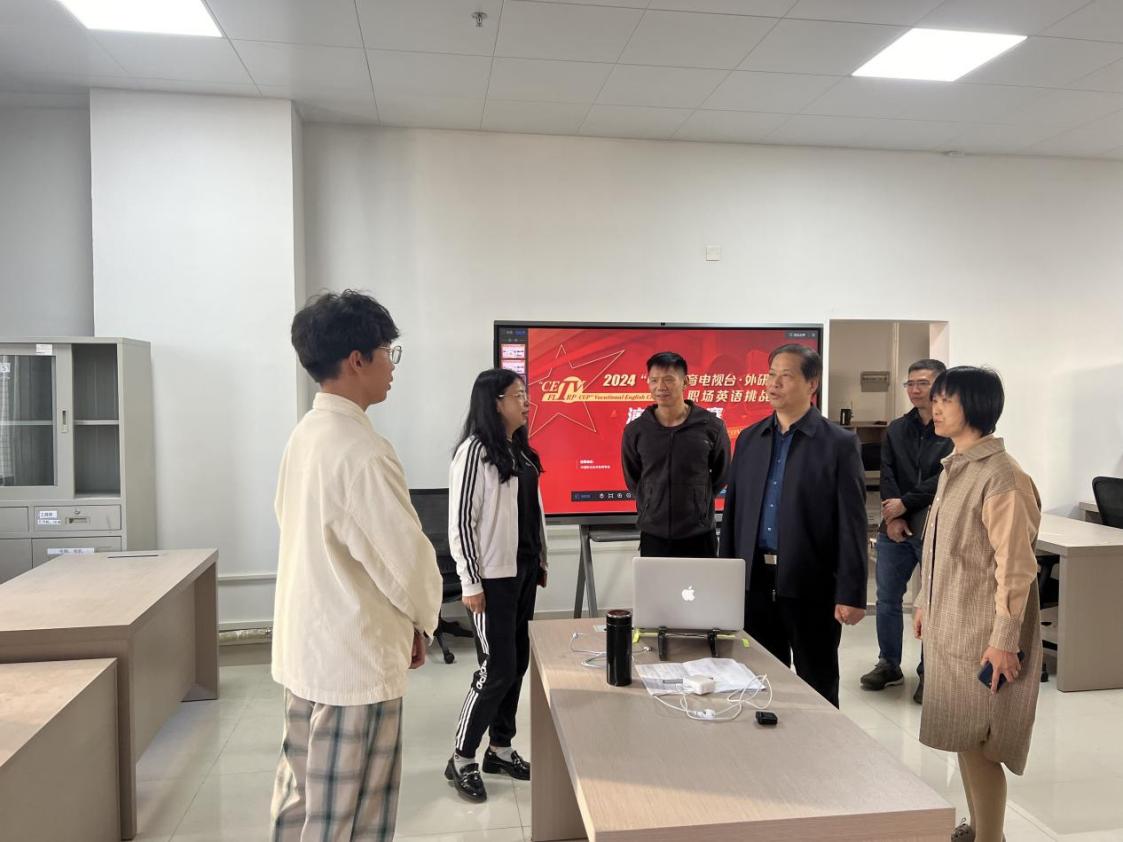 调研期间,何汉武书记与正在备赛的师生团队亲切交流,详细了解竞赛筹备进展,包括选手训练状态、老师备赛策略及设备设施准备情况。他强调职业技能竞赛是展示学院成果和师生技能的重要平台,对提升学校影响力和学生就业竞争力意义重大,并勉励参赛同学坚定信心、刻苦训练,提升专业技能和综合素养。在何书记的关怀指导下,12 月17日,郭勇涵同学(指导老师:陈锦英)在 2024“中国教育电视台 外研社杯” 职场英语挑战赛演讲比赛全国决赛中,以全国第三名的成绩荣获“特等奖”。
