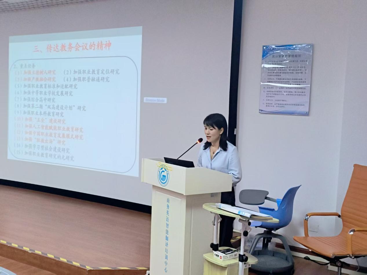 彭枚芳院长以“聚焦高质量内涵发展,构建外语育人新格局”为主题提出2025-2026学年第一学期设想。她强调以学校“新双高”建设与职教高质量发展要求为指导,坚持立德树人,统筹教学、科研等工作,服务大湾区高素质国际化人才需求。明确以“产教融合”为主线、“五金”建设为统领,凝聚师生力量,为学校及区域发展贡献“外语力量”。