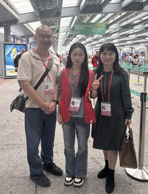 24商英2班姚琳璇:这次来到广交会作为一名天桥引导员,真是挺有收获的,也让我感到很难忘。天桥是连接全球客商的纽带,每天面对不同肤色、语言的人,一个手势、一句微笑的“这边请”,便能跨越隔阂、化解迷茫。来这里也有机会和外国人交流一下,过程很开心。也认识了一些不同行业的人,交到了朋友。这段经历让我明白,服务是双向的成长:我们用善意温暖他人,也会在他人的笑容中收获感动。