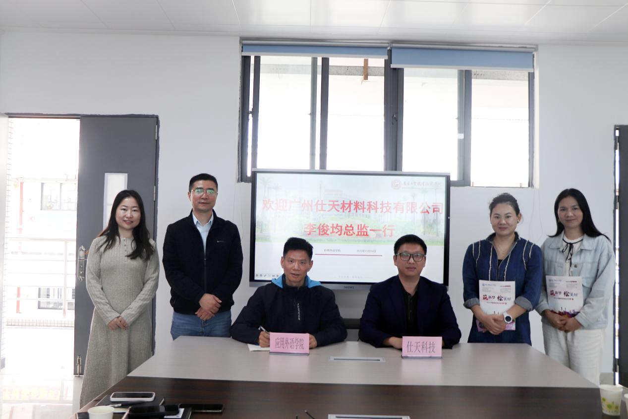 校方代表包括应用外语学院党总支书记罗春科、副书记郑楚生、辅导员许瑞如,以及经济贸易学院辅导员姚玲娟。企业方代表为广州仕天材料科技有限公司董事长助理李俊均、人事行政总监谭英、人才发展主管方华娣。