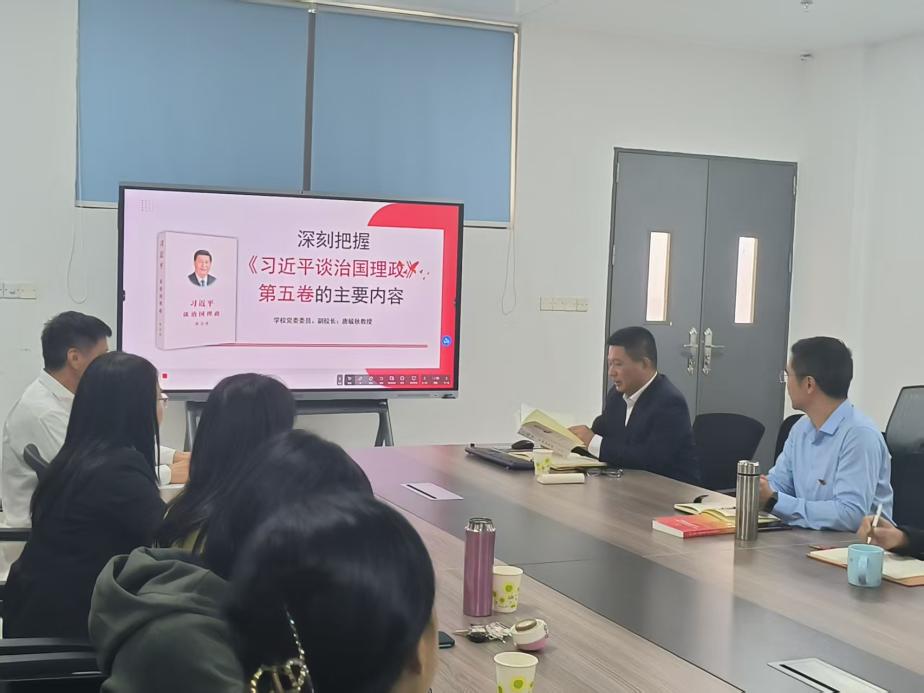 为引导广大党员干部深刻领会党的创新理论最新成果,筑牢信仰之基,补足精神之钙,统一思想行动,奋力推进应用外语学院教育事业高质量发展,11月24日上午,学校党委委员、副校长唐毓秋同志在白云校区行知楼606教室,以“深刻把握《习近平谈治国理政》第五卷主要内容”为题,为应用外语学院党政班子成员、师生党支部书记、系主任及全体辅导员作专题报告。