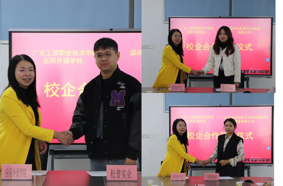 招聘会前夕,应用外语学院校企合作签约仪式在行知楼606会议室举行。学院党总支书记罗春科、院长彭枚芳、党总支副书记郑楚生、副院长胡红玲及苏俊懿出席仪式,与多家企业代表共启校企合作新征程。