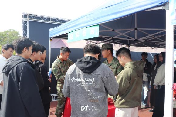活动现场,学院同步设立征兵咨询专区,积极响应“携笔从戎,铸青春荣光”号召,向同学们系统普及征兵政策。学院退伍学长结合自身军旅经历,细致解读征兵条件、优抚待遇等内容;校党委委员、副校长唐毓秋亲临现场指导,鼓励有志青年学子积极响应国家号召,将青春热血融入国防建设,以实际行动参军报国,在军营中锤炼意志、增长才干,为强国强军事业贡献青春力量。