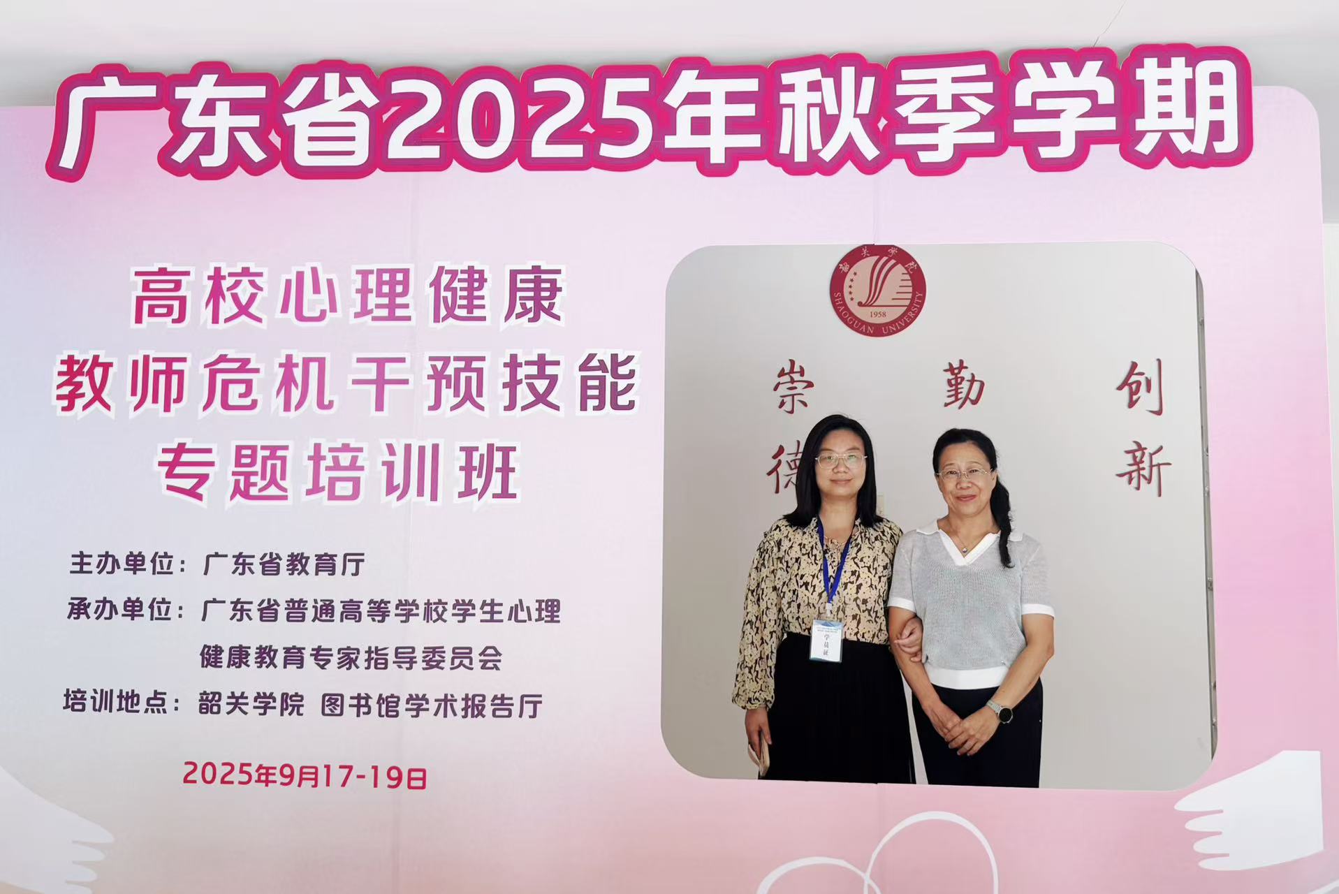 为深入贯彻落实教育部等十七部门联合印发的《全面加强和改进新时代学生心理健康工作专项行动计划(2023—2025年)》精神,进一步提升高校心理健康教育工作队伍的专业能力,广东省教育厅定于2025年9月17日至19日在韶关学院举办“2025年秋季学期高校心理健康教师危机干预能力专题培训班”。