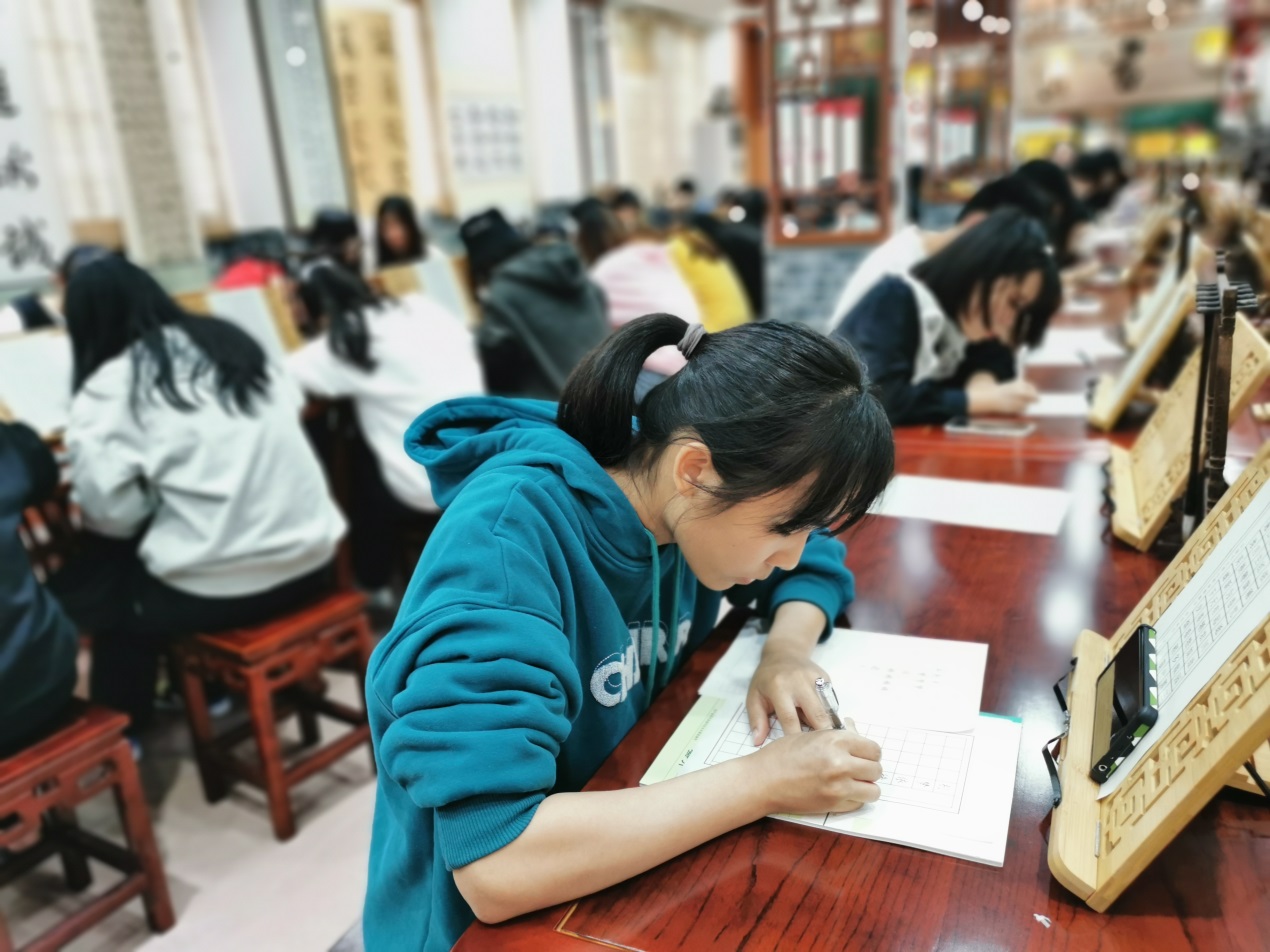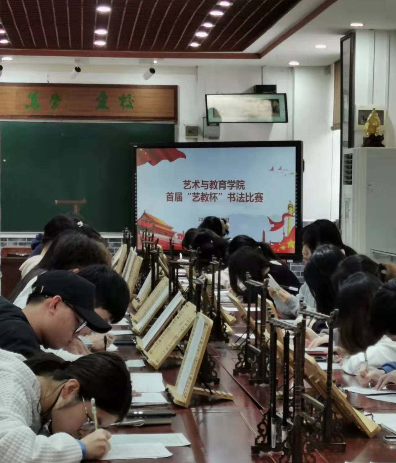 为深入学习贯彻习近平新时代中国特色社会主义思想和习近平总书记在庆祝中国共产党成立一百周年大会上的重要讲话精神,根据学校工作安排,我艺教学院于12月16日下午2:30在书道室举办首届“艺教杯”学生书法比赛,共分三批进行,现场参赛学生人数达160多人,参与面广,积极性高,用最美的字书写最爱的党,表达了爱党爱国之情。