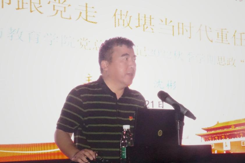 本次思政第一课以《坚定信仰跟党走,做堪当时代重任的新人》为主题,沈彬首先从党的性质、最高理想、最高目标以及100多年团结带领人民不懈奋斗取得的历史成绩等方面讲述了中国共产党是什么样的政党,然后再重点带领同学们一起学习了《习近平谈治国理政》第四卷的重要内容,紧接着介绍了中国特色社会主义新时代的核心内涵,教育引导同学们做优秀的大学生、做堪当时代重任的新人。