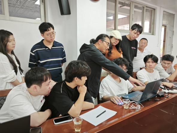在学院师生的热情引导下,企业方一行随后参观了学生作品。现场重点展示了多位学生代表的数字艺术作品,涵盖特效短片、次时代角色与场景建模等多种类型。聂华军董事长在仔细观摩后,结合行业标准与市场趋势,从多个维度提出了专业而中肯的改进建议。在观看学生自主创作的创意视频剪辑集锦时,企业领导还就剪辑节奏、叙事逻辑、视觉冲击力等细节给予了具体指导,现场交流气氛热烈。互动环节中,同学们踊跃提问,围绕视效行业的技术发展与职业能力要求等话题与企业领导深入交流。领导们结合自身实战经验悉心解答,帮助同学们明确了专业学习方向与未来职业规划。