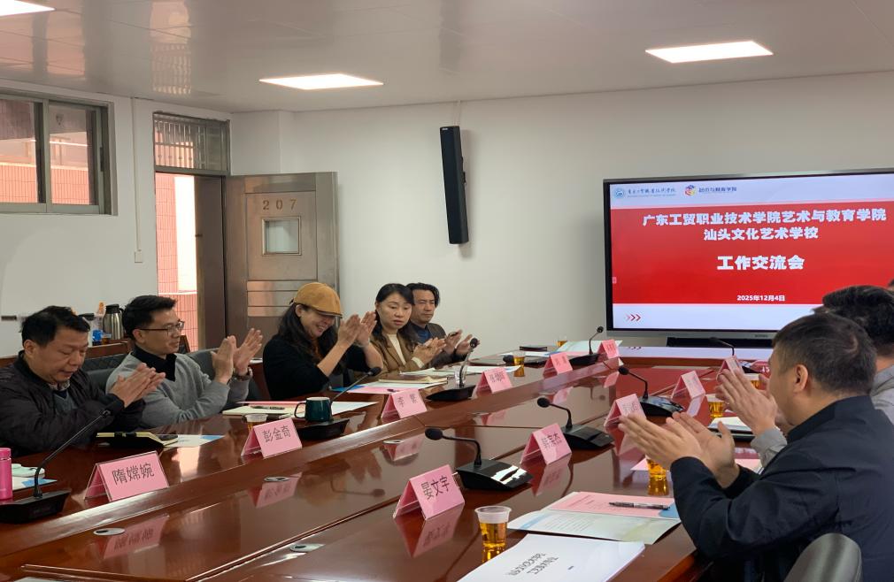 交流会上,艺术与教育学院院长张幼晖围绕学院“十四五”规划落实成效,系统介绍了办学定位、专业布局、人才培养模式及近期发展成果。汕头文化艺术学校校长黄锐辉同步分享了该校在艺术专业特色办学、技能人才培养等方面的优势与亮点。双方重点针对中高职贯通“三二转段”工作展开研讨,就课程体系衔接、师资队伍共建、实践教学落地等关键环节达成共识,进一步明确了合作方向与具体实施步骤。