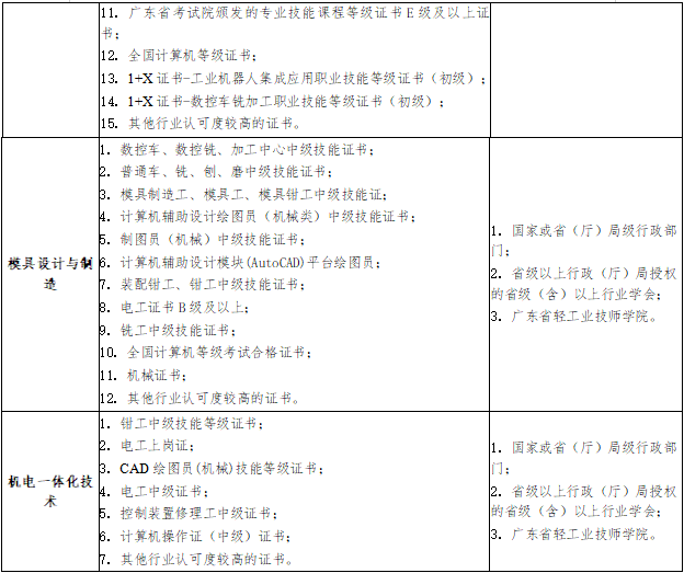 1. 广东省教育考试院颁发的专业技能课程等级证书;